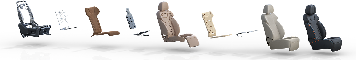 tapizados en eco-cuero, que brindan soporte envolvente, confort y ergonomía.